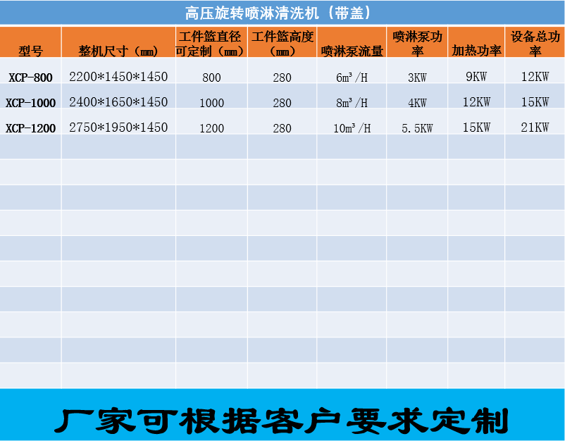 The high-pressure spray cleaning machine uses the high-pressure jet generated by the high-temperature hot water during rapid rotation and the principle of centrifugation to quickly peel off the dirt on the inner and outer surfaces of the sample workpiece to achieve the purpose of thorough cleaning. The control part adopts programmable controller, which has a high degree of automation. It is a cleaning equipment that reduces the labor intensity of the staff, is efficient, energy-saving, safe and environmentally friendly.