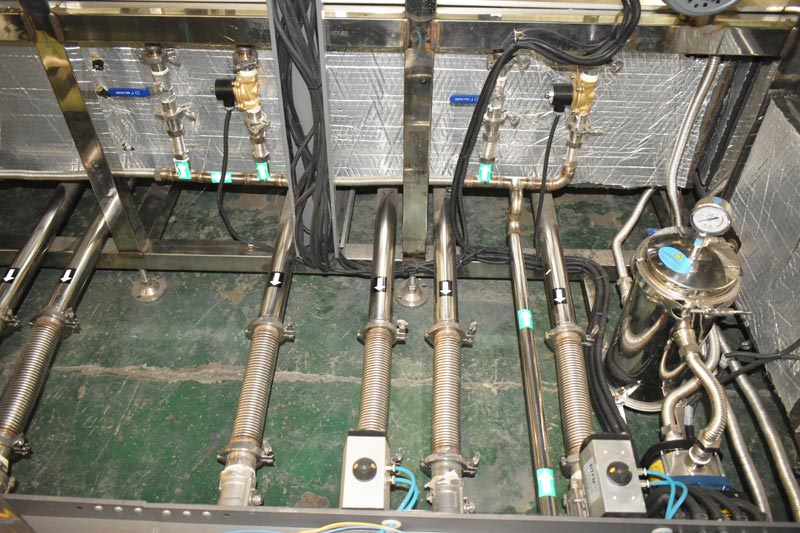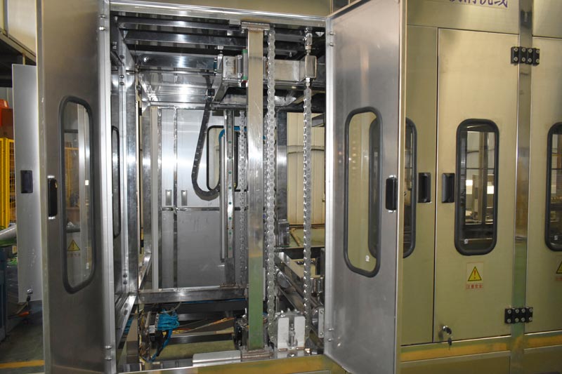 該設備針對清洗管件類工件,設備配有自動上下料工位、超聲波清洗系統,自動拋動、自動溢流和油污分離裝置,噴淋系統、自動高壓切水系統、自動烘干系統。機械手自動輸送系統采用高精度直線導軌配合高精度位置檢測傳感器,機械手可以準確的實現工件的抓取和放置。自動進排液和自動加溫系統完全實現了無人干預,自動運行,很大程度上降低了工人的勞動強度。先進的霧氣處理系統可以將清洗時產生的霧氣冷凝回流,空氣經過濾和活性炭吸附后排出。