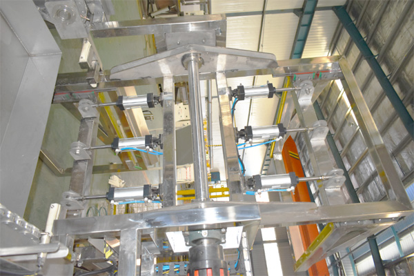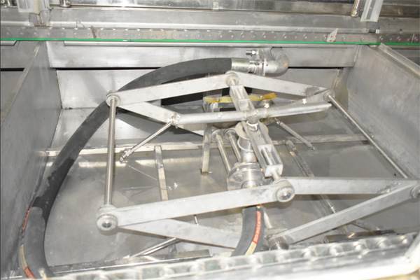 01)通過設備上面的觸摸屏設置設備運行的各項參數,待清洗料桶通過 AGV 小車輸送到緩存支架上,由夾持裝置將工件加緊經翻轉電機將工件旋轉 180 度,使料桶口向下置于上料工位。→(02)設備運行裝置自動將料桶運行到噴淋粗洗工位,高壓噴淋粗洗工位設有桶內壁旋轉噴頭,對桶內壁進行清洗。桶體外側設置頂部及側面噴頭對料桶外壁進行清洗。工位設置探測器,工件在運動時噴淋工位停止工作。→(03)料桶經過噴淋粗洗后設備運行裝置自動將料桶運行到噴淋精洗工位,高壓噴淋精洗工位設有桶內壁旋轉噴頭,對桶內壁進行清洗。桶體外側設置頂部及側面噴頭對料桶外壁進行清洗。工位設置探測器,工件在運動時噴淋工位停止工作。→(04)噴淋精洗完畢后,料桶運行到高壓風切吹干工位,熱風吹干采用高壓風機和熱風發生器,可以對工件進行快速干燥。→(05)工件經熱風吹干完畢后運行至下料翻轉工位。由夾持裝置將工件加緊進行翻轉,工件翻轉180度以后放置到緩存支架上由AGV小車帶動料桶進入干凈桶暫存區。